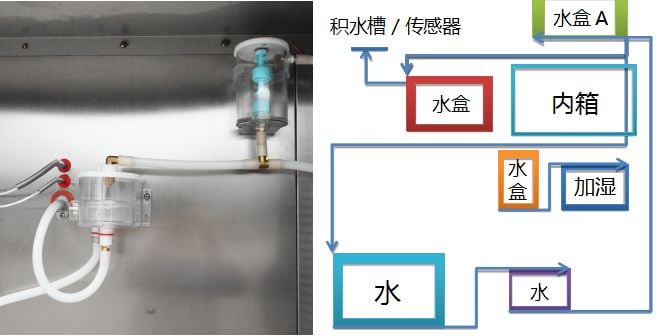 沒錯就是我們的水箱,常規試驗機用的都是不銹鋼焊接桶,長時間泡水的話會導致焊接點生銹,抽水上來會影響水路堵塞,從而使濕度亂跳,甚至是沒有濕度等情況。而這個水箱是集研發團隊聽取客戶意見后專門定制,是經過高溫老化,滲水性能,防撞擊等一系列檢測,用個十年五載的不會有太大改變。